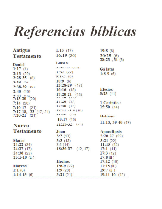 Ahora lea en su propia Biblia, Hechos 3:21. Dice que los cielos han recibido a Jesús HASTA - no permanentemente, sólo hasta cierto tiempo. ¿Hasta cuándo? Hasta los tiempos de la RESTAURACIÓN de todas las cosas. Restauración significa restablecimiento a la previa condición o estado. Restablecimiento del régimen que había sido substituido por otro. Habla de restaurar las leyes y el gobierno de Dios - de restaurar la felicidad y la PAZ universal. En este capítulo 7 de Daniel, el profeta describe el sueño y las visiones que había experimentado. Había visto cuatro bestias. Lea desde el versículo 16, la interpretación empieza en el versículo 17. Es la inspirada interpretación de DIOS - no la mía: "Estas cuatro grandes bestias son cuatro reyes que se levantarán en la tierra. Después recibirán el reino los santos del Altísimo, y poseerán el REINO hasta el siglo, eternamente y para siempre" (Daniel 7:17-18). ¡NOTE Eso! No solamente Cristo ha de gobernar - sino que también los santos - es decir, verdaderos cristianos convertidos - aquellos que son engendrados hijos de Dios - han de tomar y poseer el reino. Ellos gobernarán bajo las órdenes de Cristo y con Cristo. ¡En el Nuevo Testamento está consignado que los santos convertidos son coherederos con Cristo! En este mismo capítulo 7, Daniel describió otro poder. La cuarta bestia de su sueño - el cuarto imperio - el Imperio Romano, fue representado como una bestia con diez cuernos descrito aquí y en Apocalipsis 13 y 17 como las diez resurrecciones o resurgimientos del Imperio Romano, después de su caída original ocurrida en el año 476 E.e . Pero entre éstas - después del año 476 de la era cristiana - se levantó otro cuerno pequeño - un reino religioso, de hecho gobernando sobre los últimos siete de los otros " cuernos" o reinos romanos resucitados (versículo 20) . Lea ahora lo concerniente a este "cuerno pequeño" - el reino religioso - versículo 21: "Y veía yo que este cuerno hacía guerra contra los santos, y los vencía, HASTA [note ese otro "HASTA"] que vino el Anciano de días, y se dio el juicio a los santos del Altísimo; y llegó el tiempo, y los santos recibieron el reino". Los santos - que para entonces ya no serán carne y hueso, sino seres inmortales - han de poseer el reino a la segunda venida de Cristo. Jesucristo dice eso de manera bien clara. Es Cristo quien habla en Apocalipsis 3:21 y en 2:26-27: "Al que venciere, le daré que se siente conmigo en mi trono, así como yo he vencido, y me he sentado con mi Padre en su trono". El trono del Padre está en el cielo, donde se halla Cristo ahora; pero el trono de Cristo, en el cual se habrán de sentar los santos juntamente con El, es el trono de David, en Jerusalén (Lucas 1:32). Dice además: "Al que venciere y guardare mis obras hasta el fin, yo le daré autoridad sobre las naciones, y las regirá con vara de hierro".