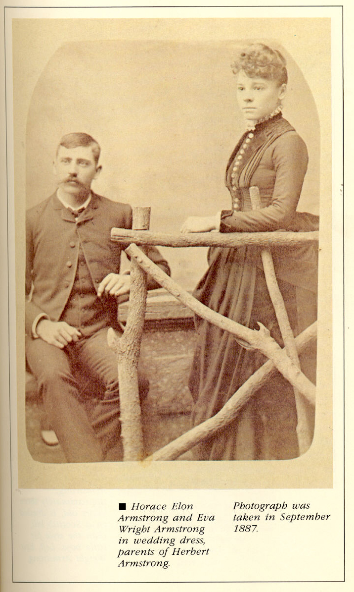 1.- Horacio Elon Armstrong y Eva Wrigth Armstrong en Wedding Dress, los padres de Herbert Armstrong