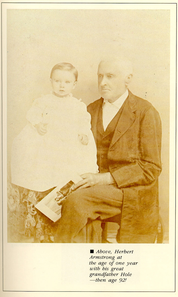 5.-Arriba, Herbert Armstrong a la edad de un año con su bisabuelo Hole entonces de 92 años